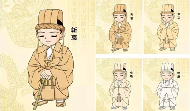 不过,我们今天拍摄的古代影视剧中,或在现实生活中的丧葬礼仪,往往采取简单的处理方式,仅用“披麻戴孝”来加以体现,“五服”的形式与内容,基本丧失殆尽。