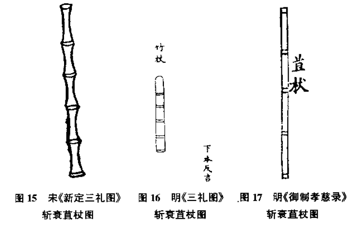 孝子手持竹棍,谓之苴(jū 雌麻)杖。为何要持杖?古人解释说,孝子因为至亲之人逝世,悲痛至极,加之办理丧事期间,事务繁忙,守丧期间生活水平恶劣,所以一般会体质羸弱多病,需要依靠拐杖支持,才能行走。不过,妇人、小孩不需用杖。