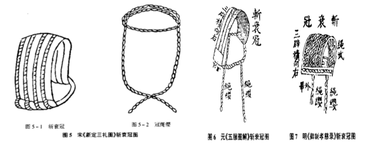 除服(衣裳)外,还有与之相配的冠、履。历代的斩衰冠有所不同: