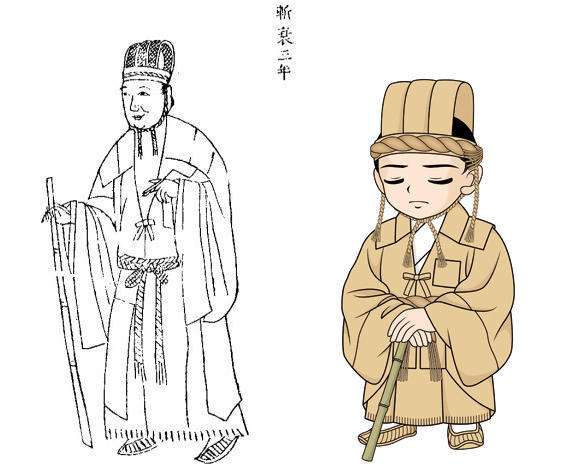 这种丧服用较斩衰稍细密一些的四升粗麻布制成,与斩衰服不同的是,这种丧服的毛边要加以缝纫修理,使之略显整齐。